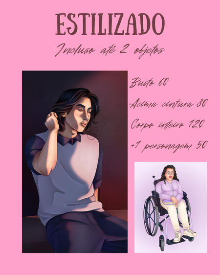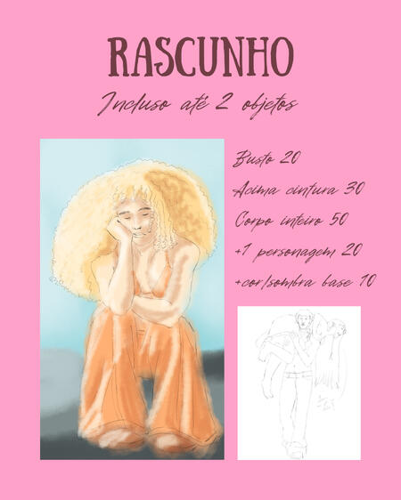 Artes de personagem com taxa de 3x o valor da ilustração pessoal